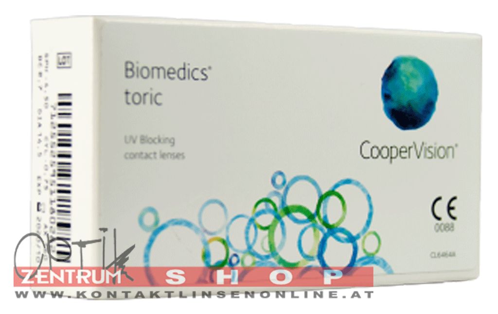 6 torische Monatskontaktlinsen für Kontaktlinsenträger mit Astigmatismus (Hornhautverkrümmung). Die Biomedics toric ist eine weiche Kontaktlinse aus dem Material Ocufilcon D mit 55% Wassergehalt und integriertem UV-Filter*.